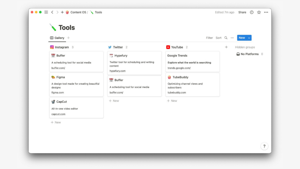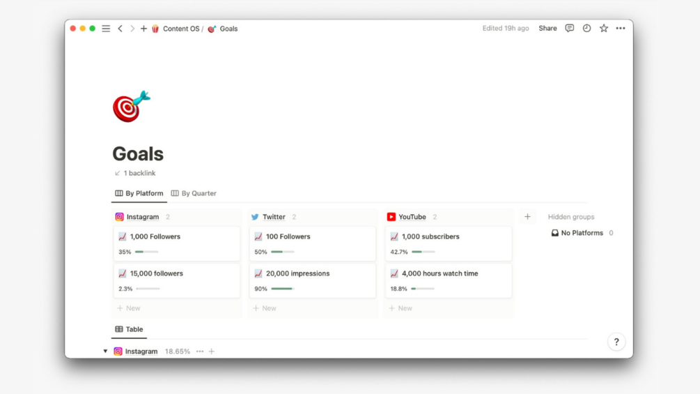 When you open up the Platforms database, there's going to be a template for each new platform you create and everything is going to be organized there. You won't need to do anything!
